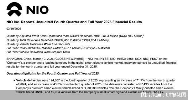 蔚来正式结束11年亏损“长跑”。3月10日,蔚来汽车发布的2025年四季度及全年财报显示,公司四季度经营利润12.5亿元,实现公司首次季度盈利。